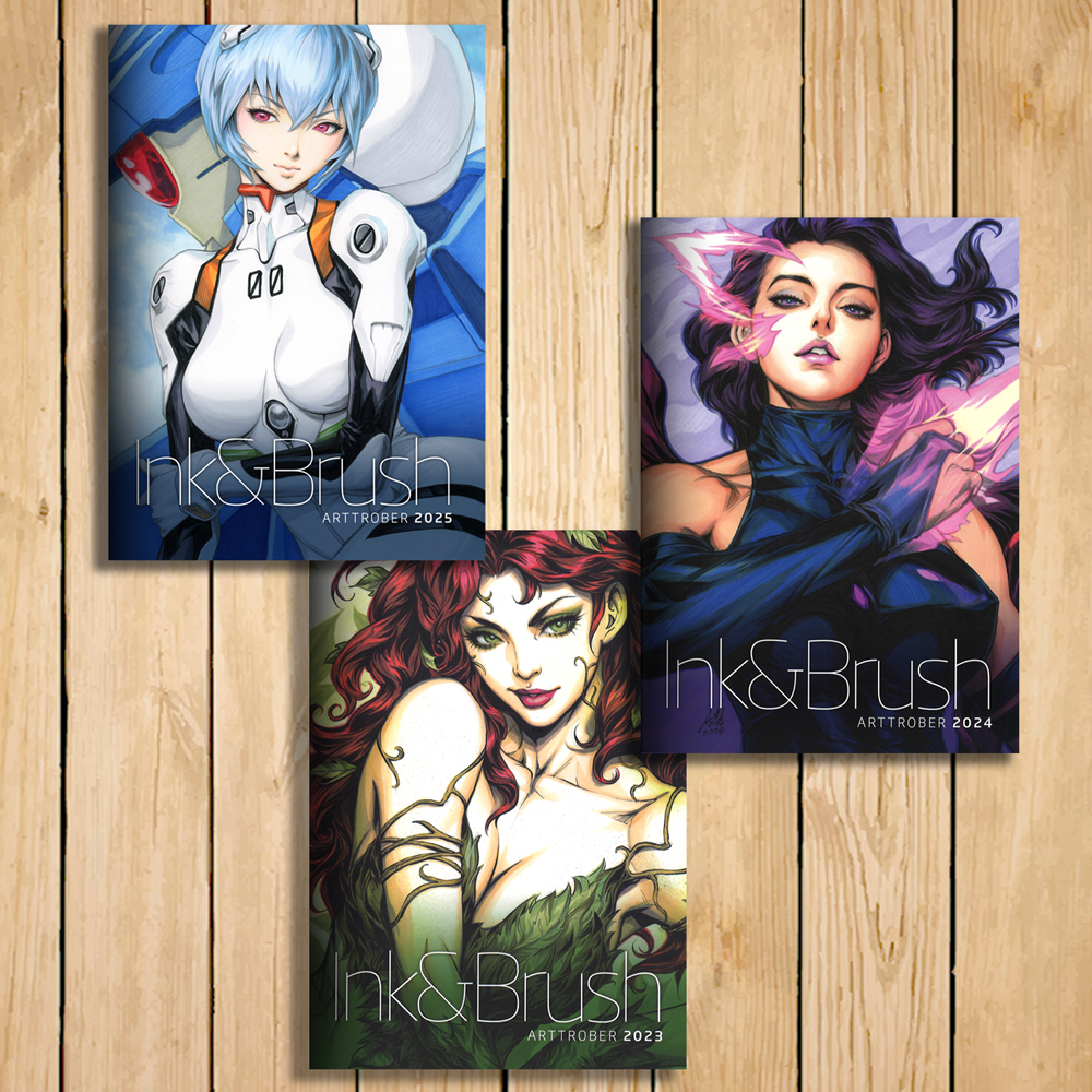 The compilation of Artgerm’s sketches done with ink brushes and markers.